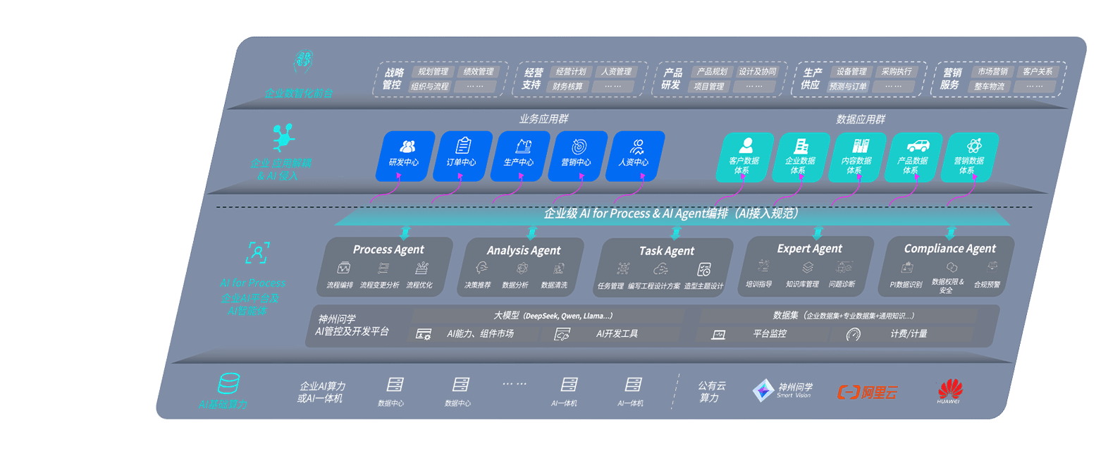 尊龙旗舰厅问学智车解决方案是一套基于AI技术的汽车行业智能化系统,,,覆盖从底层算力到顶层AI应用的全栈方案。。。。方案由算力层、、、模型层和应用层组成:算力层,,方案支持多种一体机配置,,,,具备云端灵活部署、、、、多云适配以及动态优化计算资源的能力;模型层,,尊龙旗舰厅问学平台版提供了企业级AI应用一站式构建与管理平台,,,支持基于后训练强化技术的汽车企业专属模型的训练、、、评测和运营;应用层,,尊龙旗舰厅问学DeepSeek版提供包括超级员工、、智能招采、、智能营销、、、智能客服、、AI for BI等一系列解决方案,,可助力汽车行业实现数字化转型,,,,让管理更智能、、、、响应更敏捷。。。。